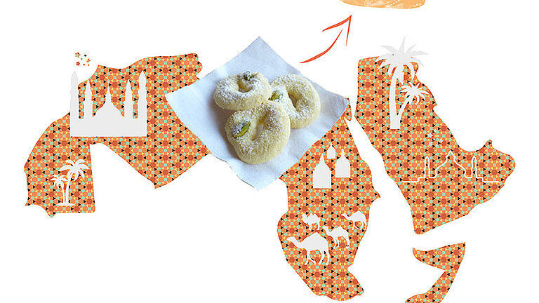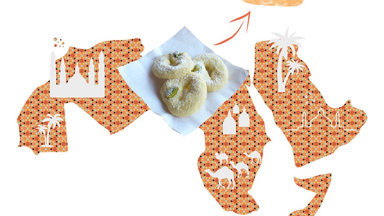 Schlagen Sie die Butter, bis sie weiß wird. Fügen Sie dann unter Rühren den Puderzucker hinzu. Fügen Sie Vanillearoma oder Rosen- bzw. Orangenblütenwasser hinzu. Vermischen Sie das Mehl mit dem Backpulver und geben Sie es löffelweise unter Rühren zur Butter-Zucker-Mischung, bis am Ende ein relativ weicher Teig entsteht. Daraus formen Sie Kugeln, die Sie mit einigem Abstand zueinander auf das Backblech legen, damit sie nicht aneinander kleben. Dekorieren Sie mit Nüssen, Pistazien oder Mandeln und drücken Sie die Dekoration leicht an. 15 - 20 Min. bei ca. 150 Grad (nicht zu heiß) backen, bis sie leicht die Farbe verändern (sie bleiben sehr hell), abkühlen lassen und servieren. Guten Appetit!