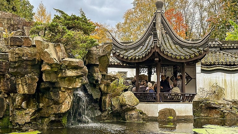 Führung durch den Botanischen Garten der Ruhr-Universität. Die Teilnehemer:innen der China-Akademie nutzen ihren Aufenthalt in Bochum zu einem Besuch des Chinesischen Gartens Qian Yuan. Foto: Arvid Kempf/CHIN-KoBe