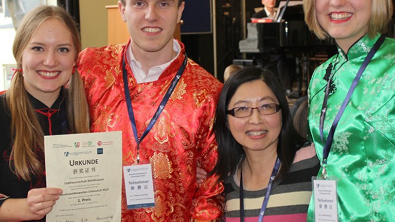 Rund 100 Schülerinnen und Schüler im Alter von sechs bis 19 präsentierten dem Publikum und der Jury kurze Texte, Theaterstücke, Sketche, Lieder und Gedichte in chinesischer Sprache. Die Fachjury, bestehend unter anderem aus dem Leiter des LSI-Sinicum Dr. Manfred Frühauf, Vertreterinnen und Vertretern des Konfuzius-Institut Metropole Ruhr und dem Konfuzius-Institut Düsseldorf, kürte gleich zwei erste Plätze. Die Schülerinnen und Schüler der Liebfrauenschule Mülhausen (Grefrath) und des Burggymnasiums (Essen) teilten sich den ersten Platz der Sekundarstufe 1. Für ihren unterhaltsamen und originellen Sketch „Im Teehaus ‘Frühlingswind’“ erhielten die Gymnasiasten als Preis die Teilnahme an einem zweiwöchigen Chinesisch-Intensivkurs am LSI Bochum. Das Burggymnasium freute sich über einen Besuch im Konfuzius-Institut in Düsseldorf.
