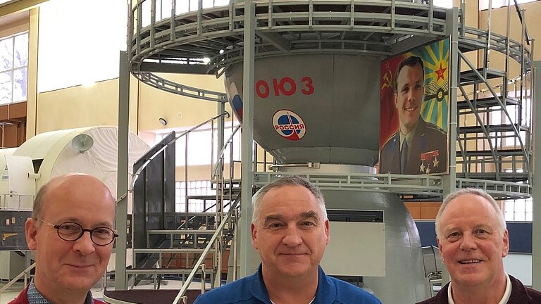 Hier ist harte Arbeit und spartanische Lebensweise angesagt. Irgendwie verständlich, schließlich erwartet die Kosmonauten in der ISS auch kein 5-Sterne-Hotel. „Es kommt ein Gefühl von Ehrfurcht in mir auf“, gesteht Leo Weschmann, der auch schon bei der NASA in Houston einen Blick hinter die Kulissen werfen durfte. „Es ist unglaublich, was hier vollbracht wird. Umso mehr freue ich mich, dass wir mit unserem Russischunterricht für die ESA einen kleinen Beitrag zum Gelingen dieser europäisch-russischen Zusammenarbeit leisten können.“ „Unfassbar, in diese Mini-Kapsel passen tatsächlich drei Menschen?“ kopfschüttelnd wirft Klaus Waschik gemeinsam mit dem Kosmonauten Alexander Skworzow einen Blick in die Original-Landekapsel, die auch die ISS-Crews zwar durchrüttelt, aber sicher wieder zur Erde zurückbringt. Nicht weniger beeindruckend ist die gefürchtete Zentrifuge, übrigens die größte der Welt, in der angehende Astronauten den härtesten Belastungstest in Form von achtfacher Gravitation bestehen müssen. Waschik und Weschmann erfahren, dass in besonderen Situationen Kräfte bis zum zwanzigfachen der Erdanziehungskraft auf die Kosmonauten einwirken können. Dies allerdings nur für wenige Sekunden.