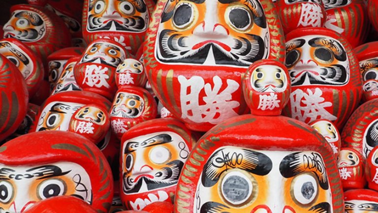 Die Daruma-Puppe ist in Japan ein Glücksbringer. Die Figur wird zumeist aus Pappmaché hergestellt. Kopf und Rumpf bilden ein Oval, das ohne Gliedmaßen wie ein Stehaufmännchen mit einem Gewicht beschwert wird. Egal, wie oft man sie zu Boden drückt, die Figur richtet sich immer wieder auf. Ihre Gestalt geht auf den in Sitzmeditation (zazen) versunkenen buddhistischen Mönch Bodhidharma, der während des 5. und 6. Jahrhunderts gelebt hat, zurück. Der Körper ist meist rot lackiert, manchmal finden sich die Schriftzeichen für Glück und Erfolg unterhalb des Gesichts, die Augenhöhlen sind anfangs unausgefüllt und weiß. Hat man einen Wunsch, malt man in der Regel zuerst das linke Auge aus und wenn der Wunsch in Erfüllung gegangen ist, füllt man die rechte Augenhöhle. Dieser Prozess entspricht dem sogenannten „Öffnen der Augen“ (kaimoku), einem Ideal aus dem Buddhismus. Anschließend wird die Figur – zumeist an Neujahr – verbrannt.