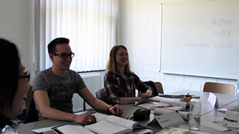 Das war schon eine Umstellung für mich, die Perspektive ist normalerweise etwas anders. Ich kenne eine ganze Reihe von Lehrwerken. Am Anfang habe ich auch Lehrwerke verwendet, die von deutschen Autoren geschrieben wurden. Mittlerweile benutze ich häufig Lehrbücher, die in Korea hergestellt wurden und die vom Aufbau her anders sind. Aber das Lehrwerk des LSI hat auch große Vorteile. Dass ich jetzt nach zwei Wochen das Gefühl habe, wow…die Teilnehmer können sehr viele Sätze sprechen, einen längeren Aufsatz schreiben und Situationen auf Koreanisch beschreiben – nach so kurzer Zeit dieses Erfolgserlebnis zu haben, das ist hier einmalig.
