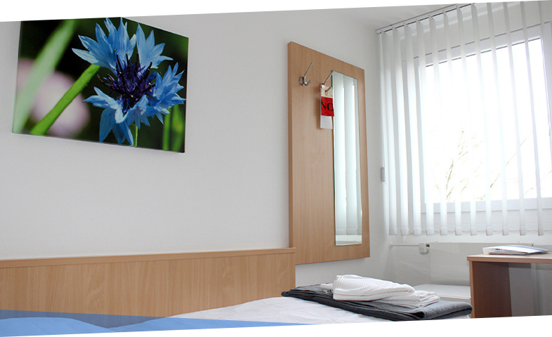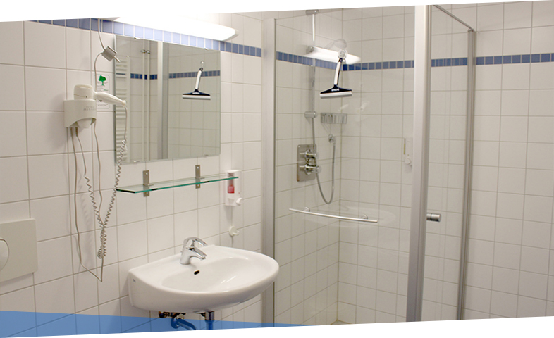 Bitte beachten Sie, dass sich bei der Zimmerkategorie Ia zwei Einzelzimmer ein Bad teilen. Das LSI kann ein behindertenfreundliches Zimmer mit einem benachbarten Zimmer für eine Begleitperson anbieten.