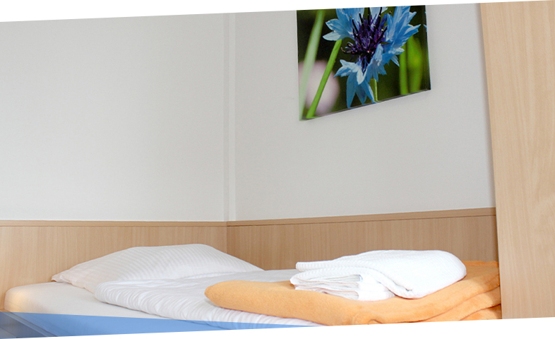 Bitte beachten Sie, dass sich bei der Zimmerkategorie Ib zwei Einzelzimmer ein Bad teilen.