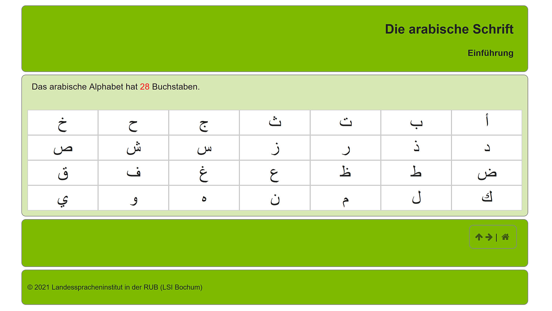 Zur Vorbereitung auf unsere Arabischkurse stellen wir Ihnen ein kostenloses Lernprogramm zur Verfügung, mit dem Sie das arabische Alphabet selbstständig lernen können.