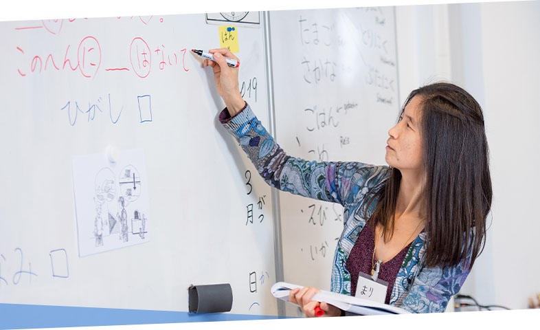 Am Japonicum unterrichtet ein erfahrenes Team aus deutschen und japanischen Lehrkräften mit eigens für das Intensivkursformat entwickelten Lehrbüchern. Dabei wird das Japanische von Anfang an aktiv genutzt. Rollenspiele, Diskussionen oder der gezielte Einsatz von Medien – ein abwechslungsreicher Unterricht in kleinen Lerngruppen erleichtert den Zugang zur Sprache, stärkt die Motivation und bereitet Freude am Lernen.